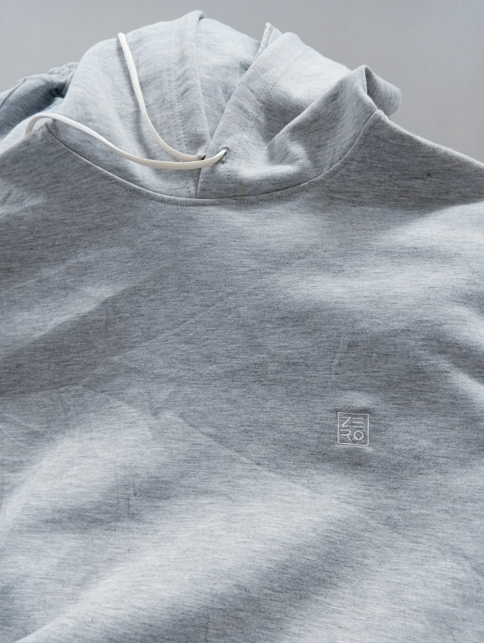 Apresentamos o casaco com capuz ZERO – Cinzento Bordado.